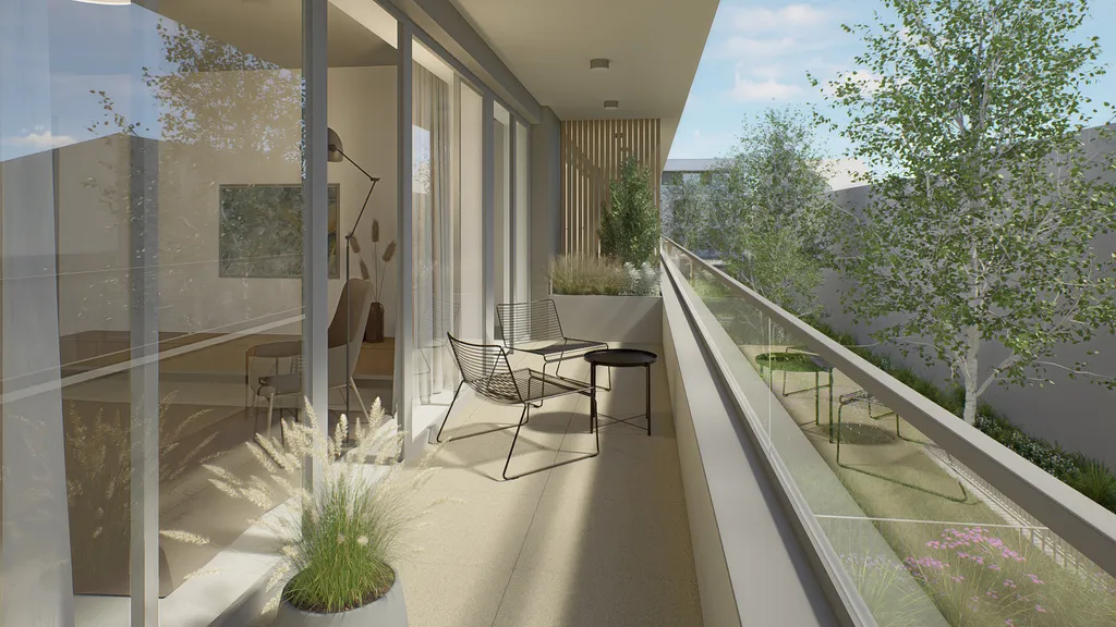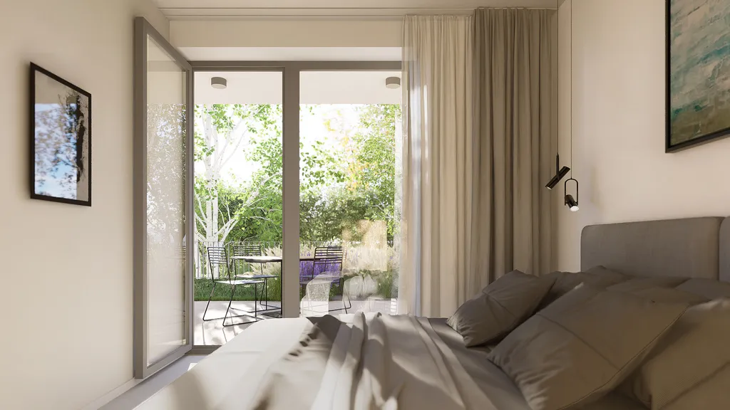 Společně se zkušenými architekty se podařilo vytvořit moderní budovy a velkou mírou prosklení. Navazující okolní zahrada se stane komunitním místem pro všechny majitele bytu. Parkovací místa jsou naprojektována pod budovou a vás tak nebude rušit pohled na stojící vozidla.