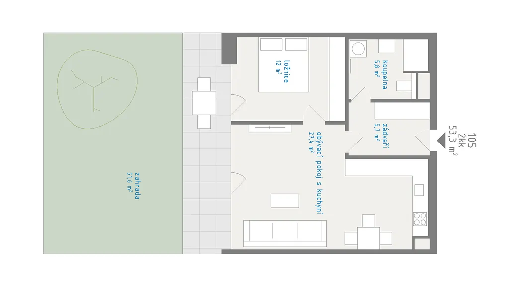 Zprostředkujeme vám prodej úplně nového bytu 2+kk se zahradou v nově vznikajícím developerském projektu.