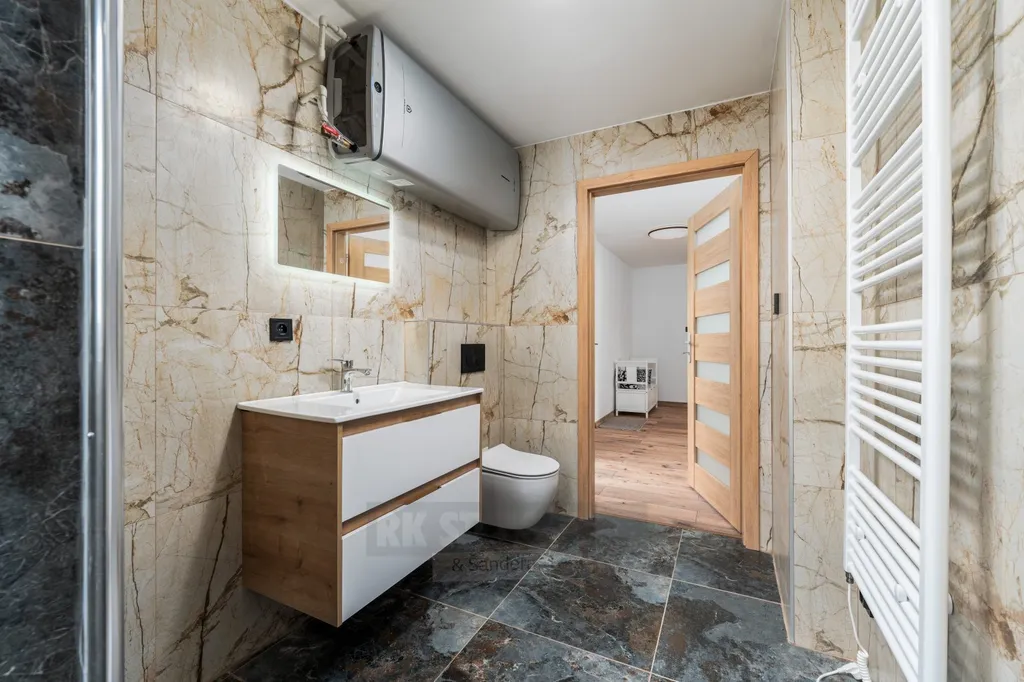 Nabízíme k prodeji byt v rodinném domě se dvěma bytovými jednotkami, situovaný ve 2. nadzemním podlaží. Byt prošel před půl rokem velmi rozsáhlou a zdařilou rekonstrukcí – nové jsou veškeré rozvody, podlahy, štuky, podhledy, moderní koupelna s podlahovým vytápěním i kuchyňská linka.