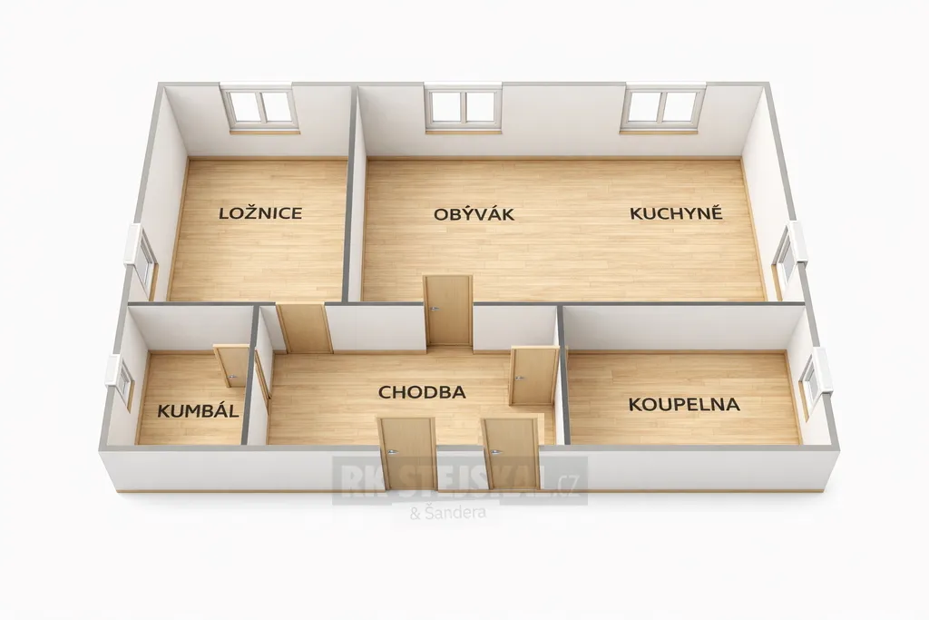 Dispozičně je byt řešen jako 2+kk, skládá se z obývacího pokoje s kuchyňským koutem, ložnice, prostorné chodby, koupelny a praktického kumbálu. Díky svému uspořádání nabízí možnost jednoduché úpravy na dispozici 2+1 přepažením obývacího prostoru.
