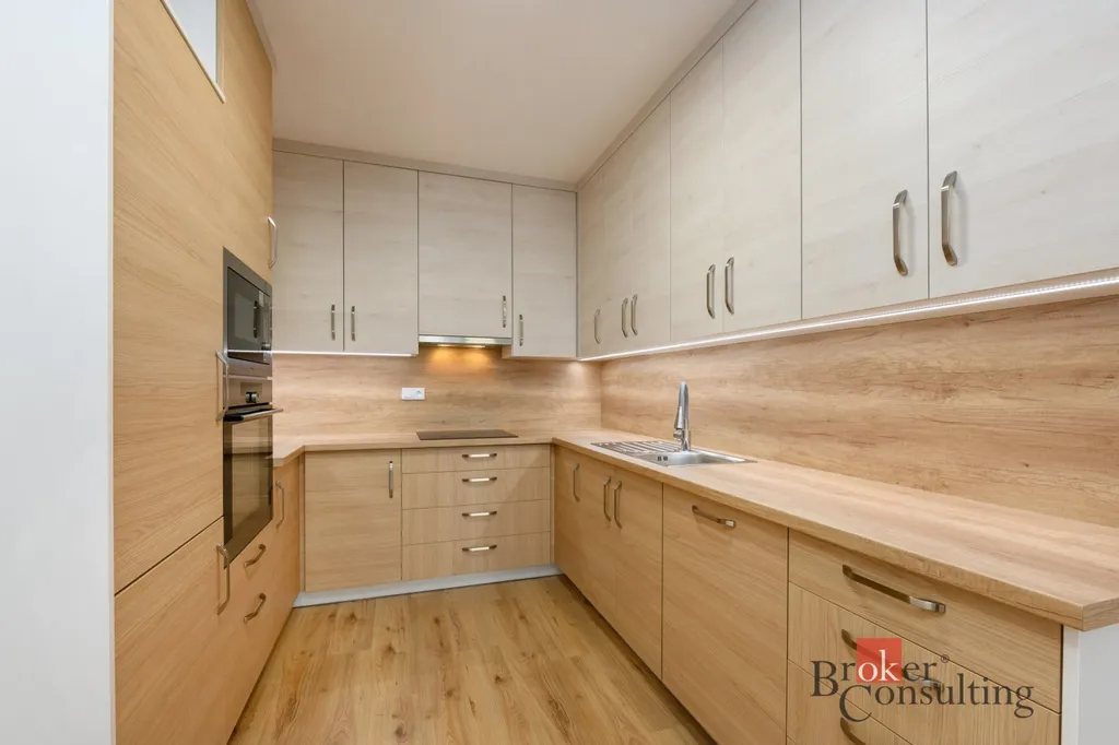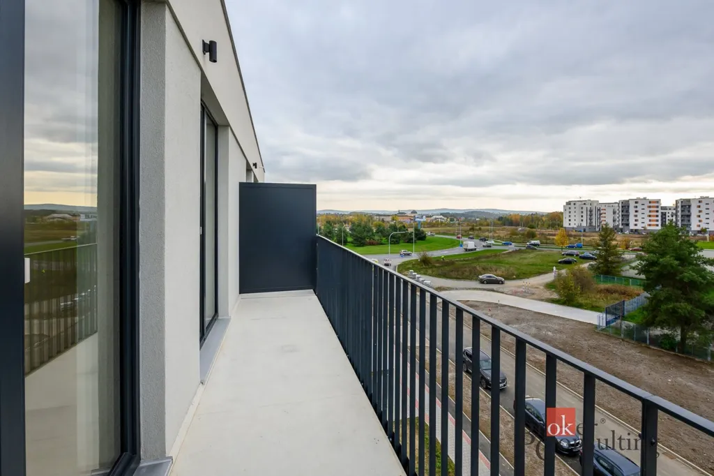 Na pronájem zcela nový byt 2+kk s balkonem ve třetím patře moderního bytového domu v Plzni na Borech, který je součástí nového developerského projektu Triangl Park Plzeň. Byt je vybaven kuchyňskou linkou na míru s vestavěnými spotřebiči, na podlaze najdeme vinyl. V koupelně je vana a WC, v předsíni se nachází prostorná vestavěná skříň. Vytápění je ústřední dálkové. Součástí pronájmu je také sklepní kóje a kryté parkovací stání v suterénu domu.