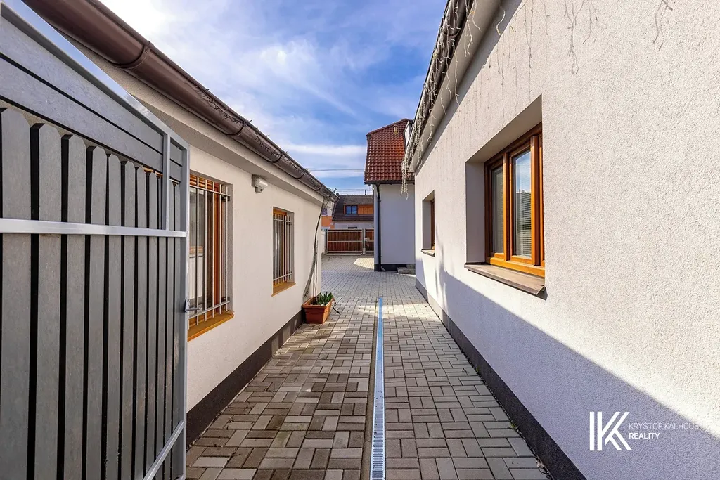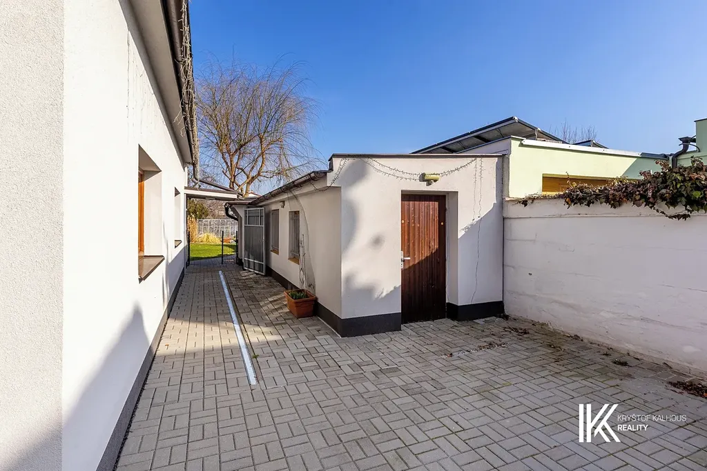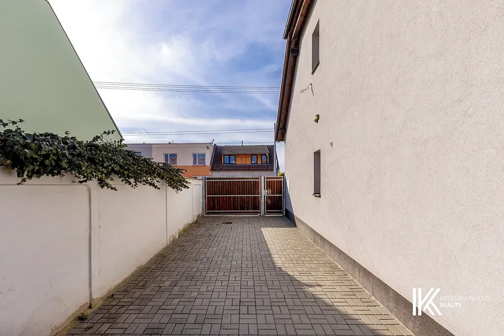 Za hlavní budovou se nachází vydlážděný dvůr, který umožňuje pohodlný příjezd autem až do areálu a parkování několika vozidel. Dvůr zároveň propojuje další dvě stavby umístěné v zadní části pozemku, které rozšiřují možnosti využití celého objektu.