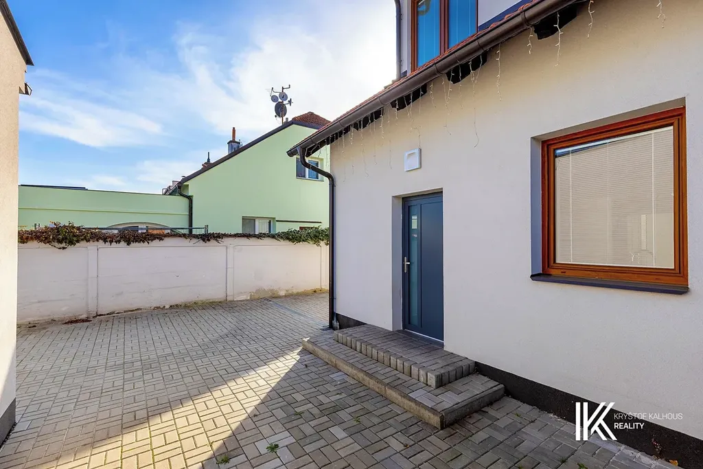 V přední části pozemku stojí hlavní dvoupodlažní budova přístupná z ulice. Za ní se nachází vydlážděný dvůr s vjezdovou branou a dále dvě samostatné jednopodlažní stavby. Úplně v zadní části pozemku je pak menší zahrada se vzrostlou zelení, která může sloužit jako odpočinková zóna pro zaměstnance i klienty. Celý areál je uzavřený a působí kompaktně, což umožňuje bezpečné a přehledné využívání všech prostor.