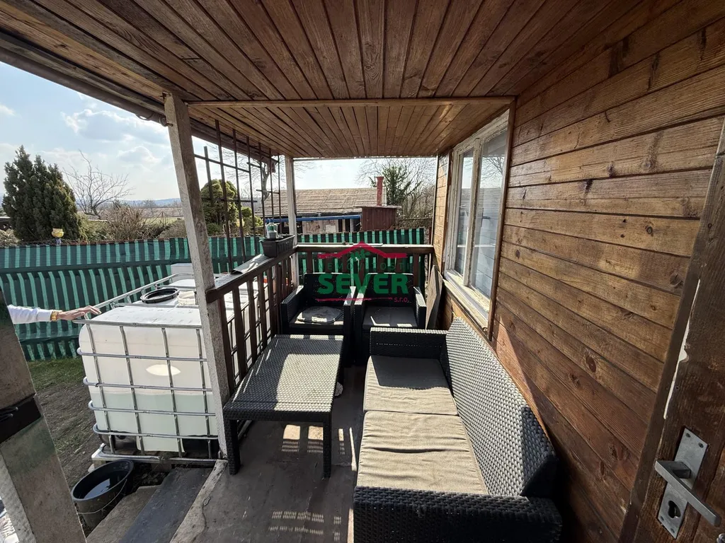 Nemovitosti SEVER vám zprostředkují prodej zahrady s chatou, Krupka, okr. Teplice, ul. Teplická. Dřevěná chata 14 m2 s terasou bez čísla evidenčního je v osobním vlastnictví. Nachází se na oploceném pozemku 211 m2 a její součástí je kůlna na nářadí, suché WC, jezírko, venkovní posezení, zásobník 1000 l na užitkovou vodu, kompostér, bazén se schůdky a pískovou čističkou, slunečník, sekačka na trávu, veškerého nářadí a materiálu. Na pozemku je přípojka na sezónní pitnou vodu a elektřina 230 V s vlastními hodinami. Chata má dvě okna se žaluziemi den a noc s jednou místností. Na zahradě roste broskev, švestka a vrba. V případě zájmu zajistíme optimální financování našimi poradci.