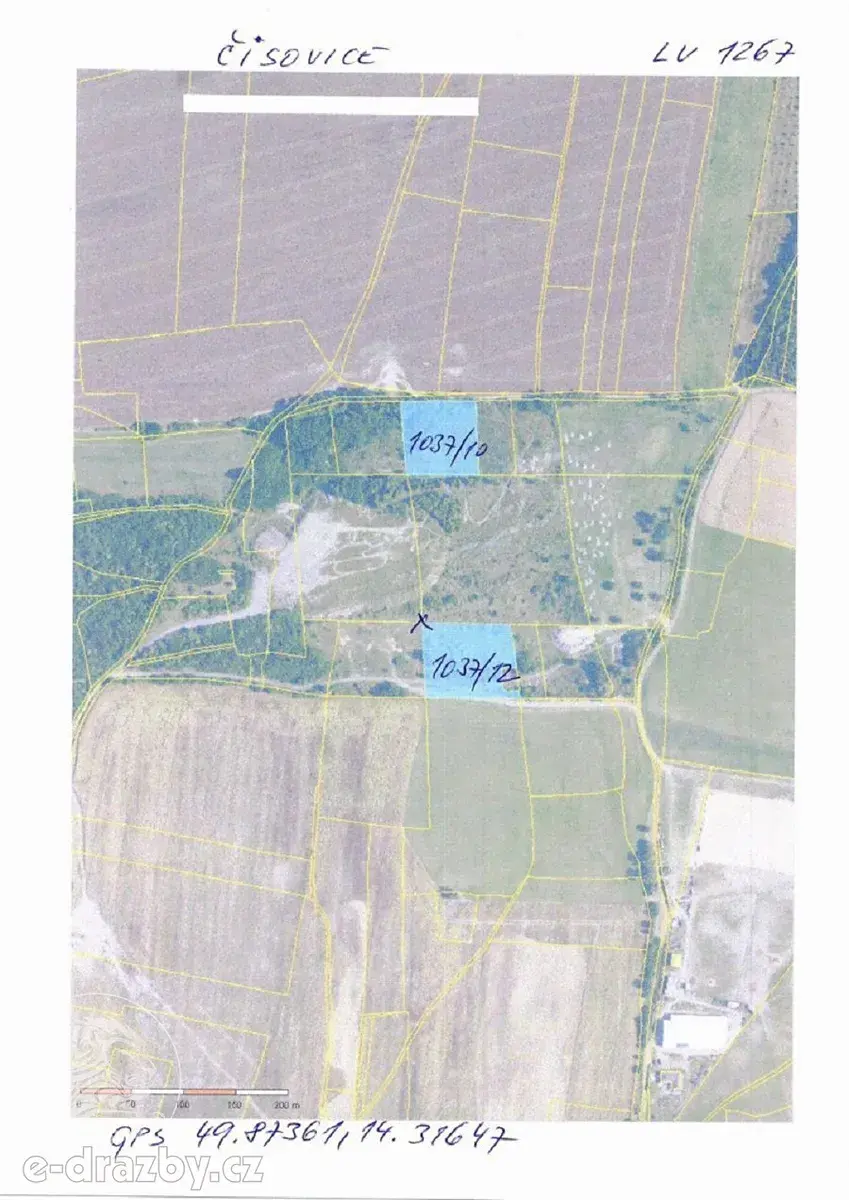 Předmětem dražby dva pozemky (5102 m2 a 5960 m2) nacházející se na severním okraji katastru obce Čisovice, okres Praha-Západ. Pozemky jsou rovinaté a jsou užívány jako ostatní plochy. Na pozemcích se nachází bezcenné nálety. Podle územního plánu se jedná o plochu ZMK - plochy zeleně, zeleň městská a krajinná. Nejedná se o stavební pozemky.