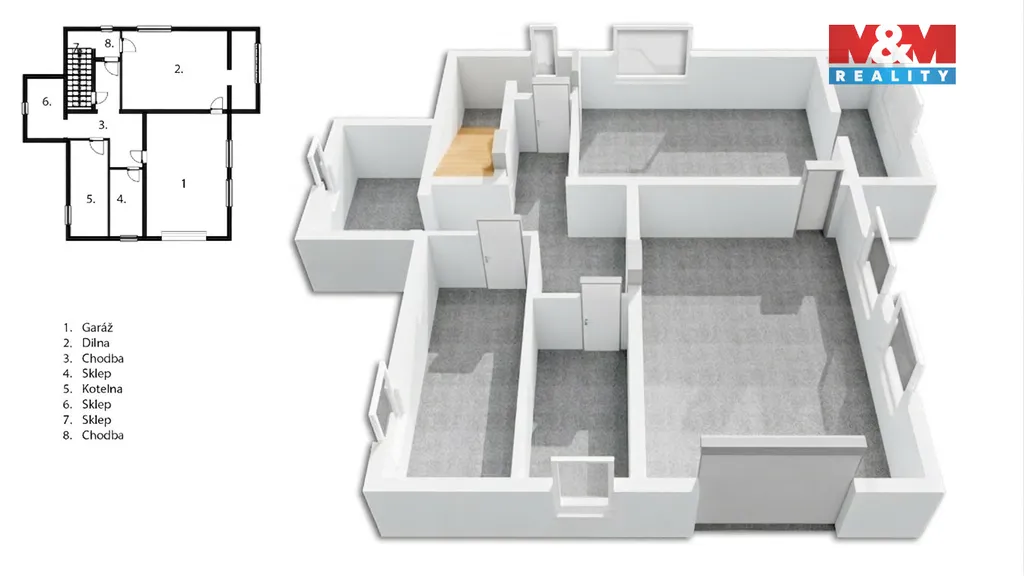 Obytná část nabízí plochu o velikosti 126 m². Dominantou je prostorný obývací pokoj spojený s prakticky řešenou kuchyní a přímým vstupem na balkon.