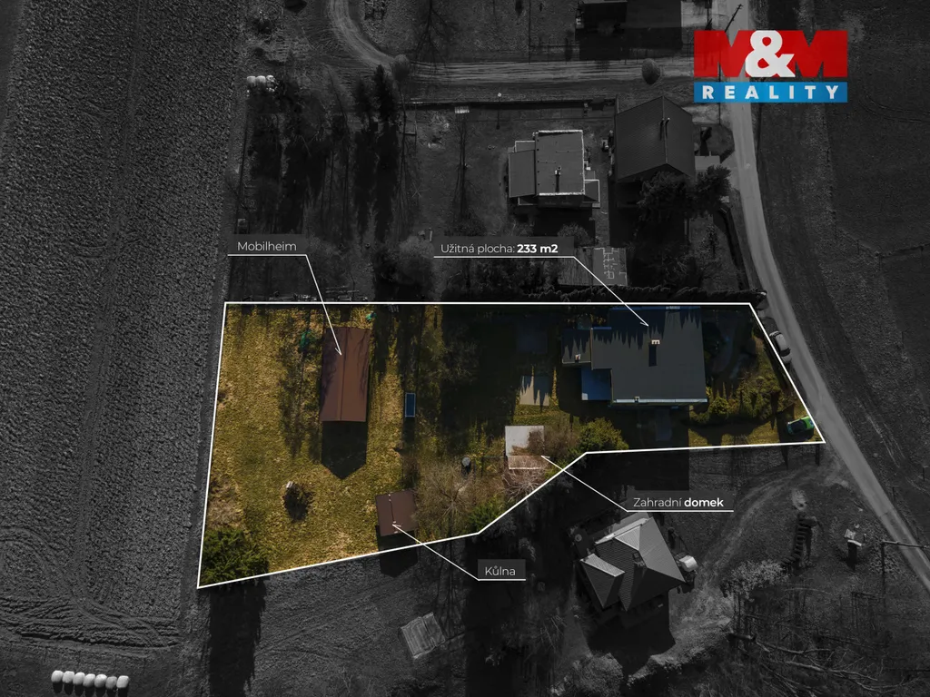 Přidanou hodnotu tvoří zastřešená veranda s krbem a udírnou, mobilheim napojený na vodu i elektřinu, udržovaný zahradní domek a kůlna. Dům je napojen na veřejný vodovod a elektřina je v mědi (1.NP). Součástí domu je také sklep s výměrou 107 m² který nabízí široké možnosti využití.
