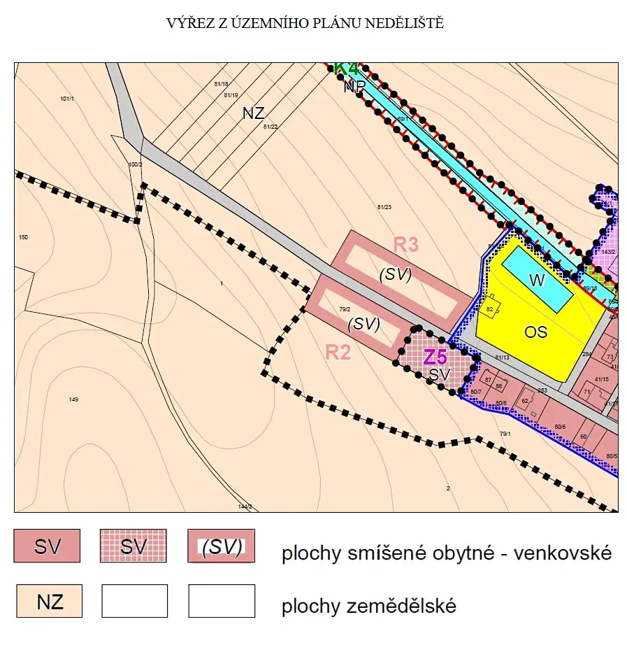 Pozemek p. č. 79/2 o výměře 8 669 m2 je evidován v katastru nemovitostí druhem orná půda, tímto způsobem je pozemek i využíván. Dle platného územního plánu se část pozemku o výměře 3 470 m2 nachází v ploše „NZ – Plochy zemědělské“ a část pozemku o výměře 5 199 m2 nachází v ploše „SV – Plochy smíšené obytné - venkovské“ (výměry částí byly zaměřeny z katastrální mapy).