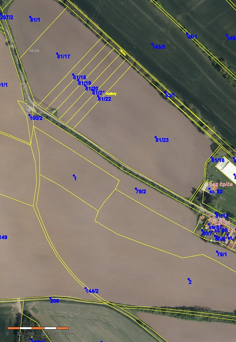 Pozemek p. č. 79/2 o výměře 8 669 m2 je evidován v katastru nemovitostí druhem orná půda, tímto způsobem je pozemek i využíván. Dle platného územního plánu se část pozemku o výměře 3 470 m2 nachází v ploše „NZ – Plochy zemědělské“ a část pozemku o výměře 5 199 m2 nachází v ploše „SV – Plochy smíšené obytné - venkovské“ (výměry částí byly zaměřeny z katastrální mapy).