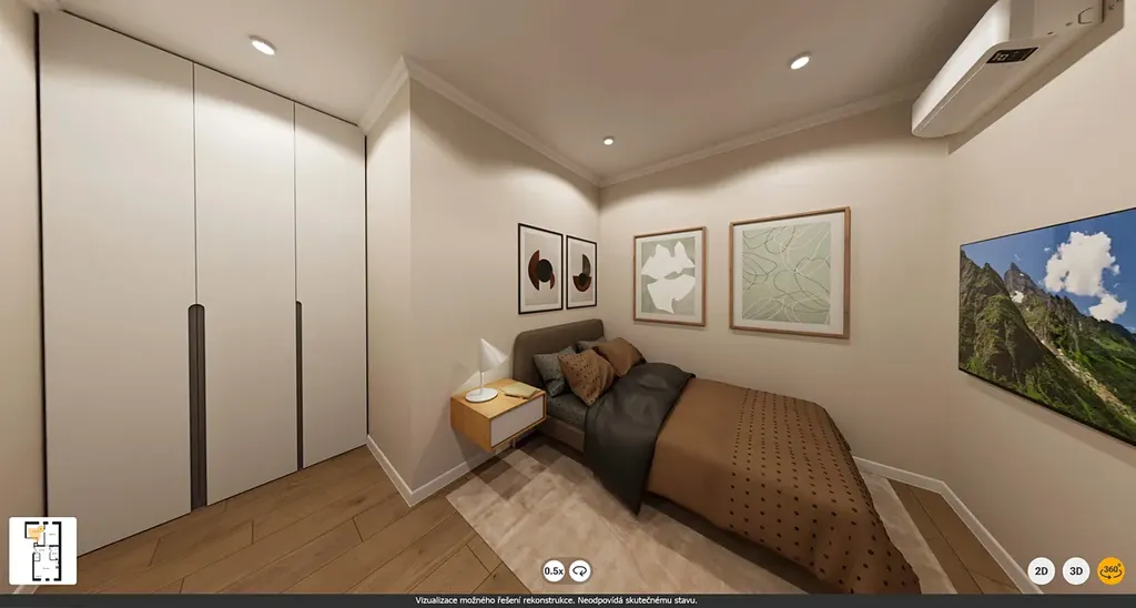 - dva samostatné pokoje, každý o velikosti přibližně 12 m²