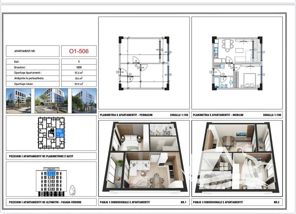 Nabízíme k prodeji apartmán 2+kk, o ploše od 59.9 m², v moderním multifunkčním rezidenčním komplexu situovaném pouhých 300 metrů od moře. Projekt se nachází v klidné a strategicky výhodné lokalitě Qerret, která patří mezi nejoblíbenější přímořské destinace v Albánii.