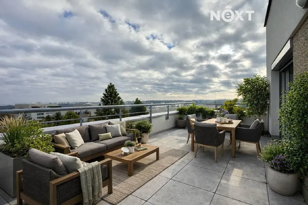 Byt je ve třetím, předposledním patře. Na terasu nejde vidět od sousedů, ani z okolních domů.