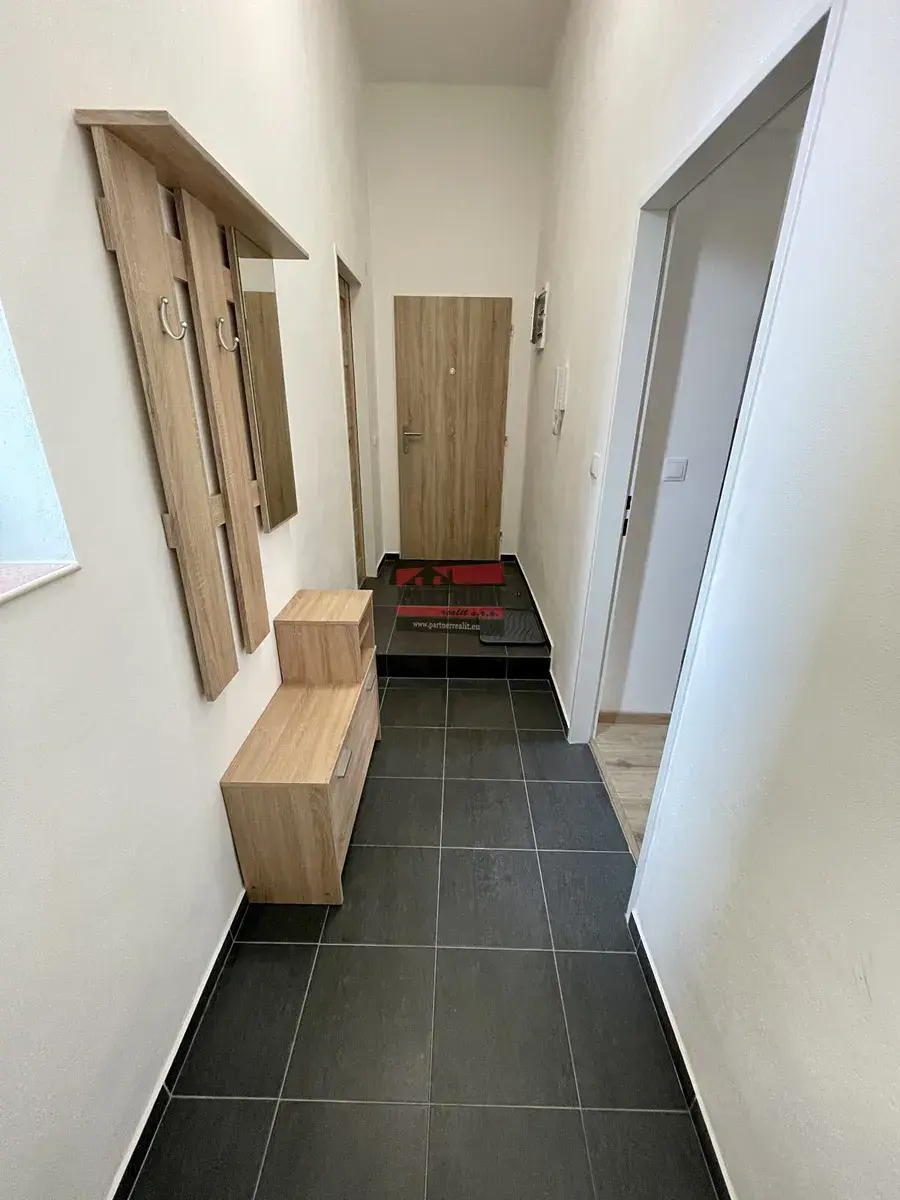 Byt o užitné ploše 48,48 m2 se nachází ve 2. nadzemním podlaží a má tuto dispozici: vstupní chodba, pokoj s kuchyňským koutem včetně nové kuchyňské linky na míru s vestavnými spotřebiči zn. Candy : lednicí s mrazákem, myčkou, troubou, indukční deskou a digestoří, atypický pokoj rozdělený příčkou na dva pokoje a koupelna s vanou a toaletou. V 1.PP se nachází sklepní kóje o výměře 2 m2 , úklidová místnost a technické zázemí.