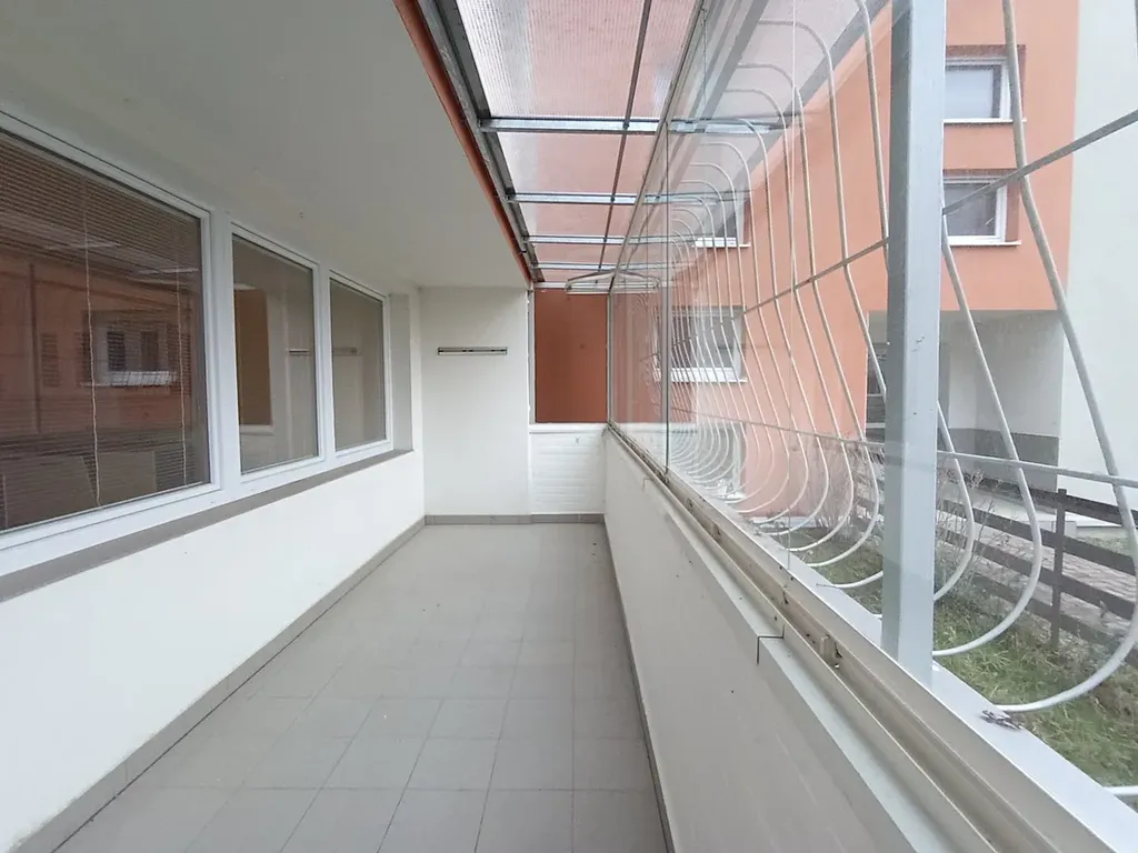 Byt disponuje prostornou lodžií o ploše cca 16 m², která nabízí příjemné místo k relaxaci s výhledem do zatravněného vnitrobloku s dětským hřištěm ohraničeného okolními budovami. Zasklení lodžie snižuje tepelné ztráty, případnou prašnost a hlučnost. Bezpečnost bytu posiluje světlá kovaná mříž na zábradlí lodžie a bezpečnostní dveře u vstupu do bytu.