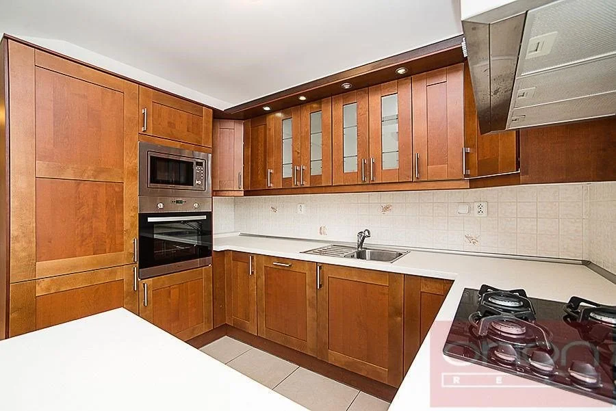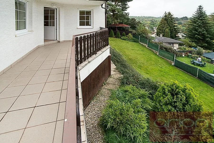 Dům v přízemí nabízí vstupní halu, plně vybavenou kuchyň s jídelnou a balkonem, prostorný obývací pokoj (65 m²) s krbem a přímým vstupem na zahradu, dále šatnu, koupelnu se sprchovým koutem a samostatnou toaletu. V prvním patře se nacházejí 3 prostorné ložnice, koupelna s rohovou vanou a toaletou a šatna. V nižším přízemí jsou další 2 ložnice, koupelna, toaleta a přímý vstup na zahradu a terasu. K dispozici je garáž pro 1 auto a další parkovací stání na pozemku. Klidná lokalita v blízkosti mezinárodních škol a s výbornou dostupností do centra. Tramvajová zastávka je vzdálena jen pár minut chůze. V okolí naleznete kompletní občanskou vybavenost – školy, restaurace, obchodní centrum Nový Smíchov i nákupní galerii Nové Butovice.