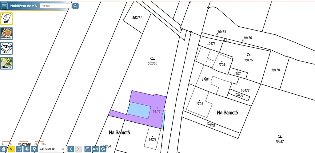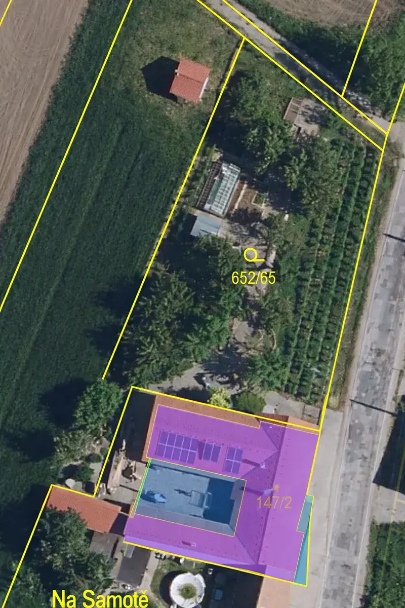 Pozemek: 454 m² + zahrada 1 732 m²
