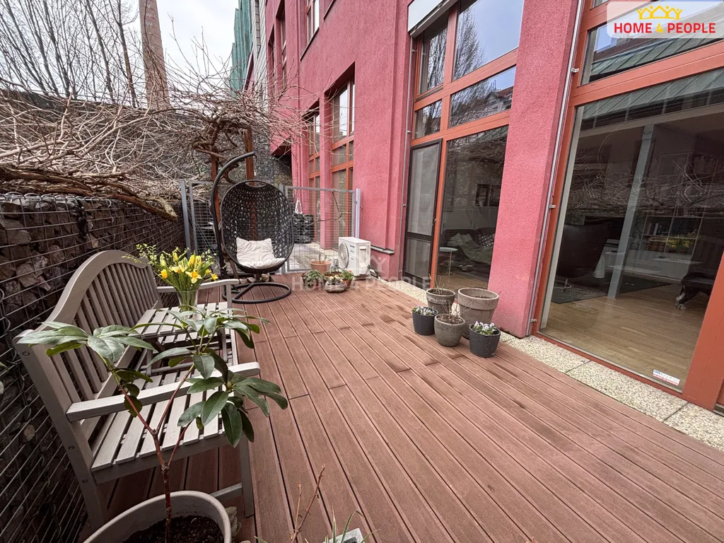 Zprostředkujeme Vám pronájem atraktivního mezonetového bytu 3+KK s terasou, který se nachází v Praze 8, část Libeň, v ulici Novákových v oceňovaném projektu Lofty Palmovka. Byt se nachází v přízemí domu a disponuje plochou 97 m² s terasou 23 m² a je rozložen do dvou úrovní, což poskytuje dostatek soukromí a prostoru pro celou rodinu. Součástí spodní části je vstupní chodba s botníkem, koupelna se sprchovým koutem, dvojumyvadlem a toaletou. Z chodby je přístup do komory (3 m²) s dostatkem úložného prostoru. V komoře je přípojka na pračku a sušičku. Dominantou bytu je prostorný obývací pokoj s prosklenou stěnou se 2 vstupy na terasu. Po dřevěných schodech je přístup na galerii a do dvou uzavřených pokojů. Každý z nich disponuje oddělenou šatnou (5 m²). V obývacím pokoji je umístěná rozkládací pohovka s knihovnou. Kuchyňský kout je vybavený vestavěnými spotřebiči Electrolux a Bosch (sklokeramická indukční varná deska, digestoř, myčka, multifunkční trouba, mikrovlnná trouba), volně stojící lednicí s mrazničkou Bosch. Na kuchyňský kout navazuje jídelní část s dostatkem úložného prostoru a jídelním stolem z masivního dřeva. Terasa je ohraničena gabiony s živým plotem, díky tomu nabízí příjemný odpočinek. V hlavní obytné části jsou dřevěné podlahy parketového typu. Byt je klimatizován a má předokenní dálkově ovládané žaluzie pro komfortní regulaci světla a teploty. Celý bytový prostor je bezpečnostně zajištěn s napojením na centrální pult (Jablotron), k převedení na nájemce. K bytu náleží sklep (2 m²) , umístěný na chodbě naproti bytu a je též bezpečnostně zajištěn. Součástí pronájmu je garážové stání v zakladači v přízemí domu. Obyvatelé mají k dispozici uzavřený vnitroblok se zahradou. Tento dům má minulost, duši a architektonickou hodnotu. Lofty Palmovka vznikly přestavbou bývalého továrního areálu a jejich charakter dodnes připomíná zachovaný komín v centrální části. Klidná lokalita v Praze 8 má výbornou dopravní dostupnost do centra. Metro B Palmovka, BUS, TRAM (150 m). V blízkém okolí je plná občanská vybavenost MŠ, ZŠ, pošta, obchod, Divadlo pod Palmovkou, nádraží ČD Libeň, O2 aréna, nákupní centrum Harfa. Doporučujeme prohlídku zajímavého atypického bytu. Ev. číslo: 32130.