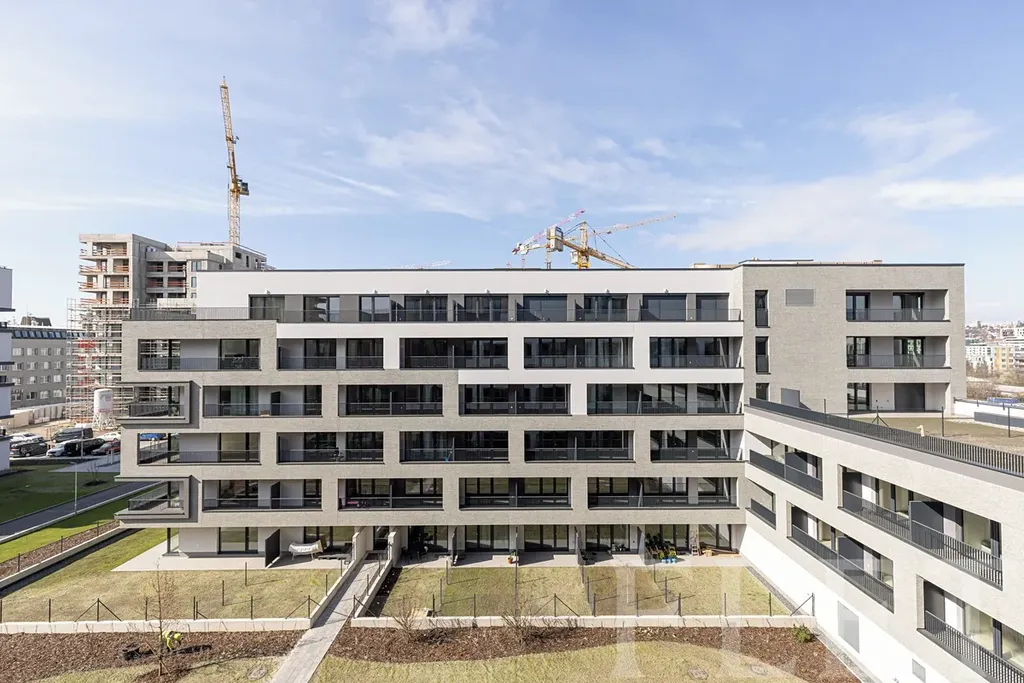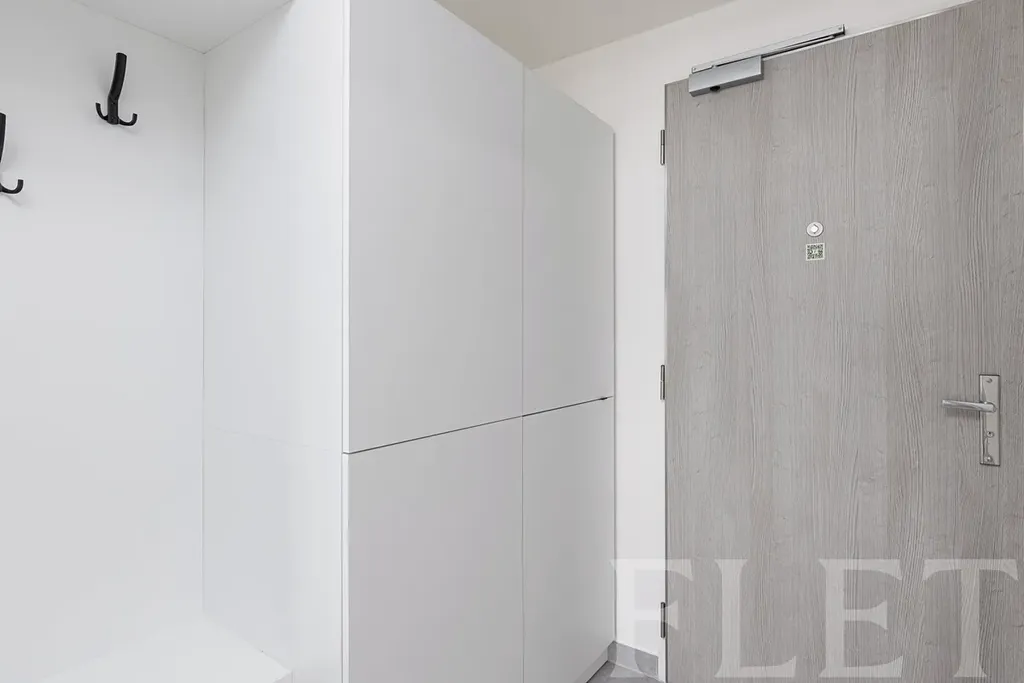 Byt je nevybavený, což vám dává možnost zařídit si jej přesně podle vlastních představ. Součástí kuchyňského koutu jsou základní spotřebiče – indukční varná deska, trouba, mikrovlnná trouba, myčka a lednice s mrazákem. Příjemné vnitřní prostředí zajišťuje rekuperační jednotka, která se stará o pravidelnou výměnu vzduchu.