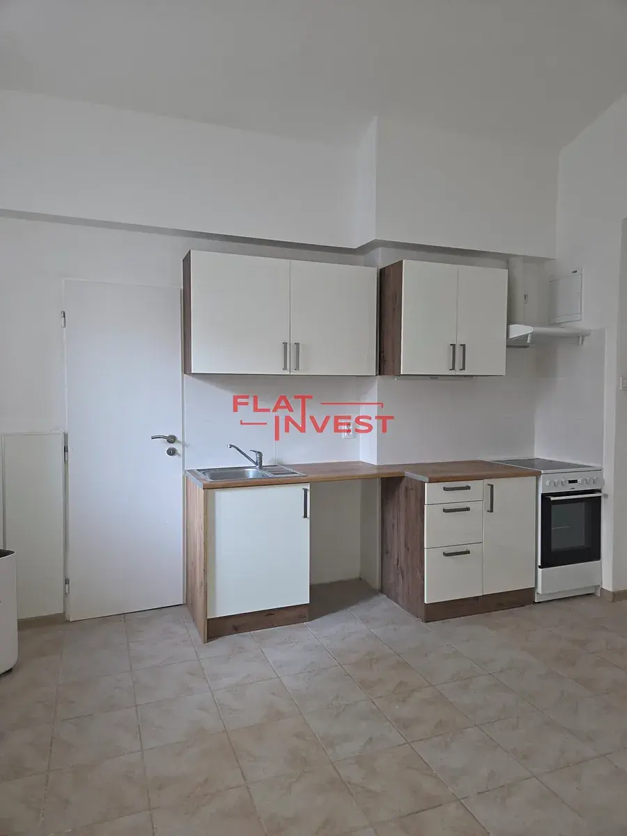 Obytná místnost: Prostorný pokoj s kuchyňským koutem (kuchyně je jedinou součástí vybavení, zbytek bytu si můžete zařídit podle vlastního vkusu). Na podlaze je praktická keramická dlažba.