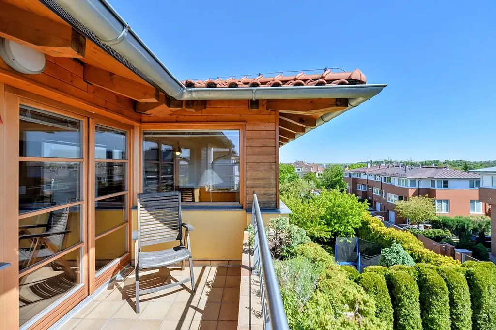 Velkorysá terasa nabízí ideální prostor pro relaxaci i soukromé posezení s výhledem do okolí.