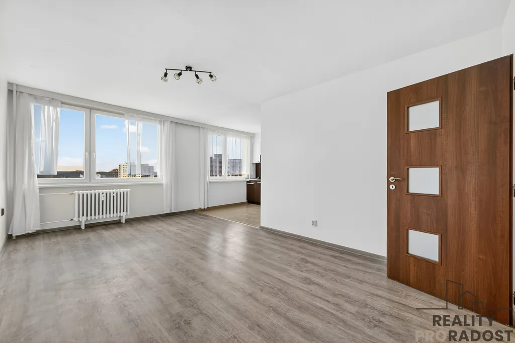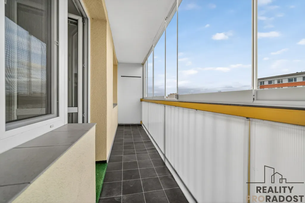 Byt nabízí dostatek prostoru pro jednotlivce, pár i rodinu a díky vyššímu patru i příjemný výhled.