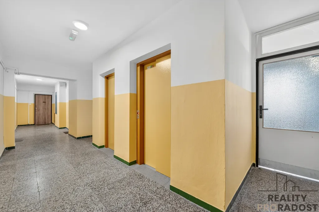 Byt je situován v 8. patře bytového zatepleného domu, ve kterém jsou k dispozici dva výtahy (osobní i nákladní), což zajišťuje pohodlný přístup.