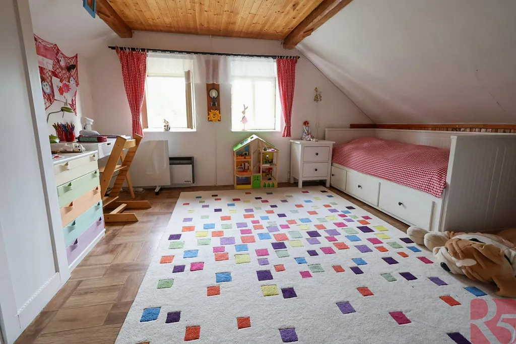 Dále i vlastní půda s možností úložných prostor. Dům je vytápěn krbovými kamny, a dvěma dalšími kamny na tuhá paliva. Jsou k dispozici přímotopy s dálkovým ovládáním, přes mobilní telefon.