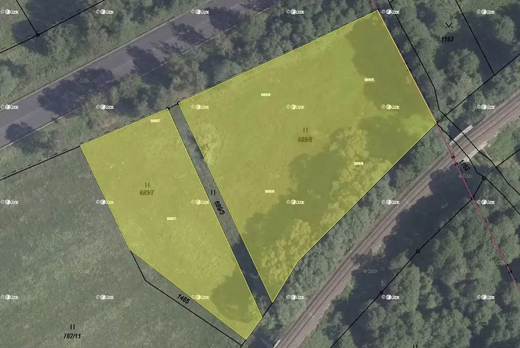 Pozemky o celkové výměře 6 271 m², vedené na LV 869, parcelní čísla: 689/7, 689/8.