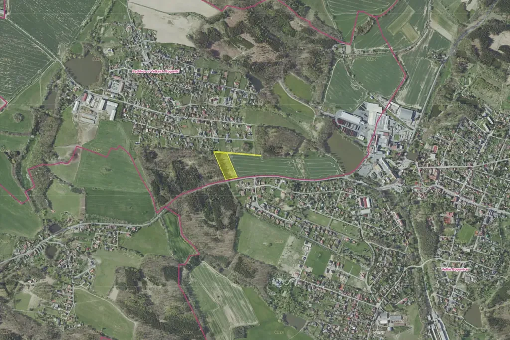 Pozemek k prodeji v katastrálním území Petříkov u Velkých Popovic.