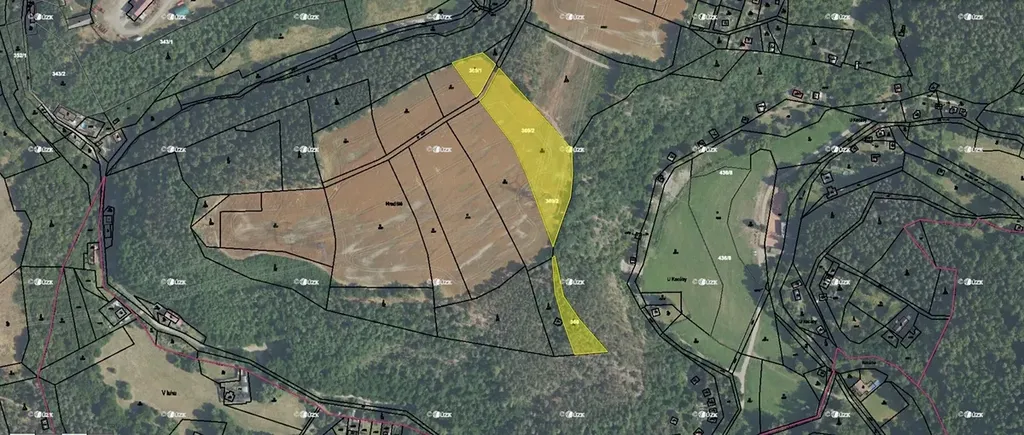 Pozemky patří pod LV: 409, parcelní číslo: 369/1, 369/2, 366.