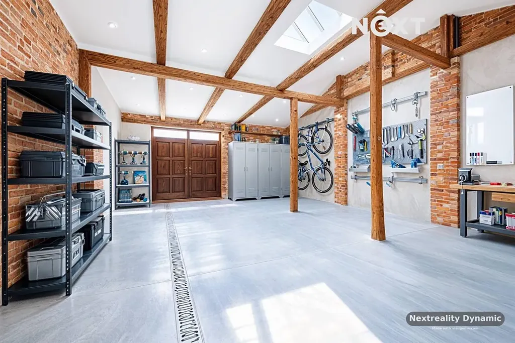 Velkou výhodou je prostorná garáž (59 m²) s průjezdem, která nabízí dostatek místa nejen pro parkování, ale i pro dílnu či další využití.