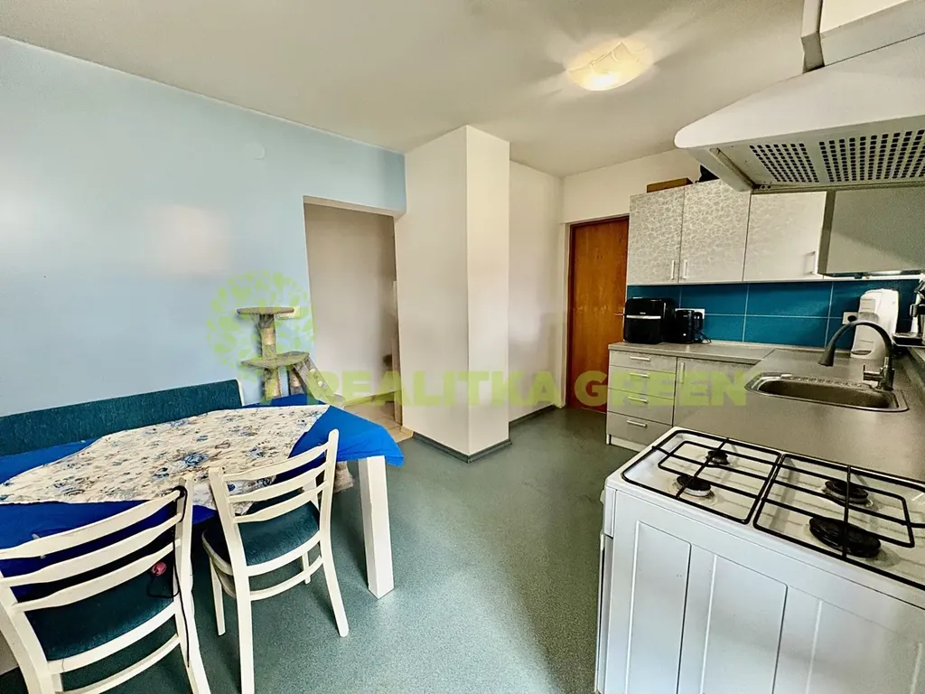 Dispozičně: vstupní chodba, velká prostorná chodba, technická místnost s možností přestavby na pokoj, schodiště na půdu, koupelna se sprchovým koutem a vanou, samostatné wc, prádelna, kuchyň s jídelnou a se vstupem na terasu, dětský pokoj, obývací pokoj s krbovými kamny, ložnice. Kuchyňská linka je vybavena vestavěnou myčkou.