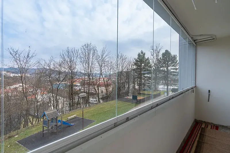 Výhled do zeleně a na dětské hřiště je velkou výhodou tohoto pěkného bytu.