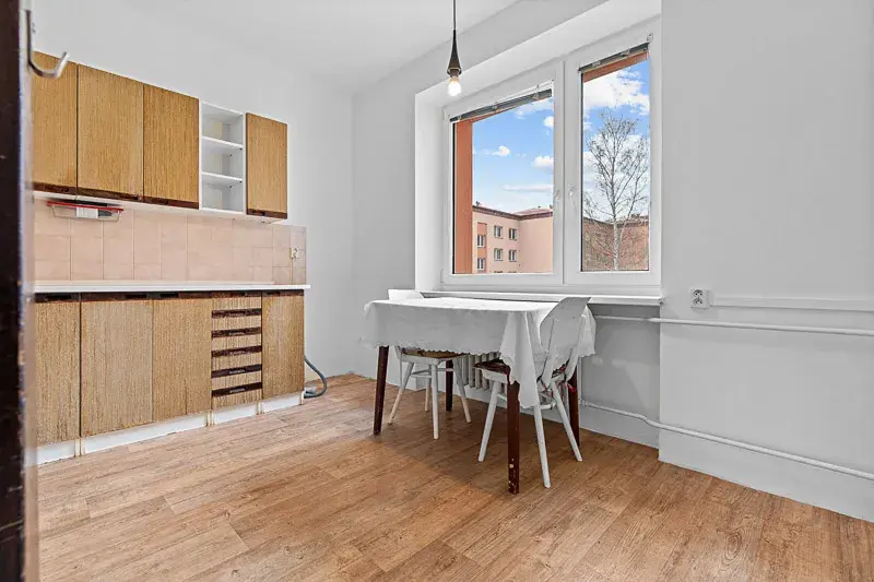 Byt o výměře cca 72m² je v osobním vlastnictví, v původním stavu a nachází se ve 2. nadzemním podlaží panelového domu s výtahem. Díky své dispozici působí velmi prostorně a vzdušně. Nabízí tři neprůchozí pokoje, kuchyni vybavenou spotřebiči s jídelnou, koupelnu s vanou, samostatné WC, šatnu v bytě a praktickou předsíň s úložnými prostory.
