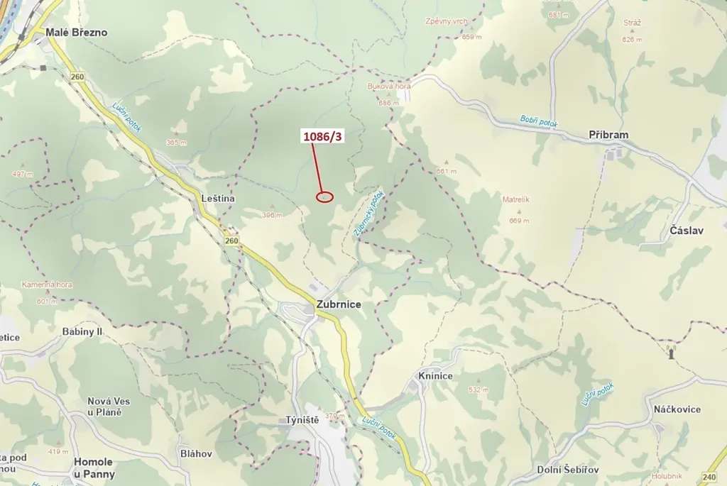 Lesní pozemek o výměře 18 m2, parcelní číslo 1086/3, podíl 9/10, katastrální území Zubrnice, obec Zubrnice, obec s rozšířenou působností Ústí nad Labem, okres Ústí nad Labem, Ústecký kraj.