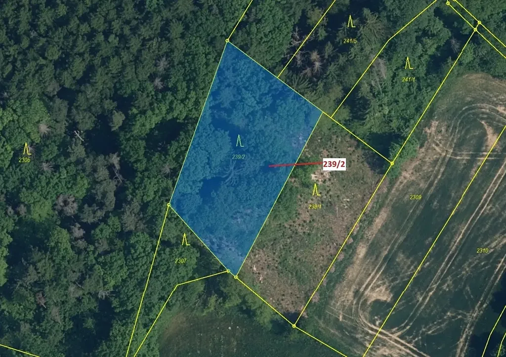 Lesní pozemek o výměře 2305 m2, parcelní číslo 239/2, podíl 1/1, katastrální území Jenišovice u Jablonce nad Nisou, obec Jenišovice, obec s rozšířenou působností Turnov, okres Jablonec nad Nisou, Liberecký kraj. Po těžbě.