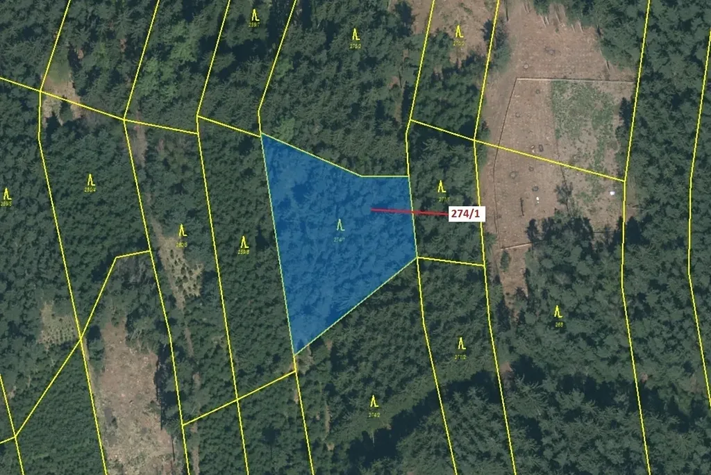 Lesní pozemek o výměře 2949 m2, parcelní číslo 274/1, podíl 1/1, katastrální území Tříklasovice, obec Psárov, obec s rozšířenou působností Tábor, okres Tábor, Jihočeský kraj. Po těžbě.
