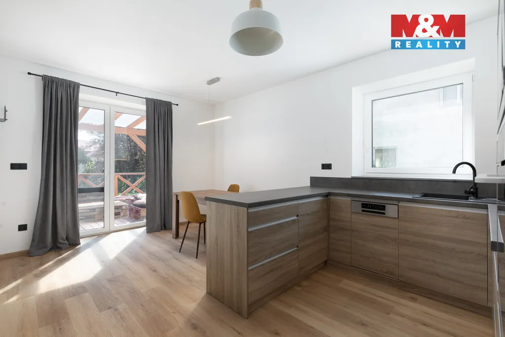 Dominantou je krytá terasa navazující na oplocenou zahradu, ideální pro relax i společně trávené večery.