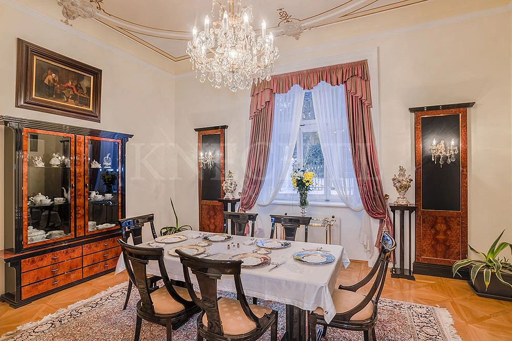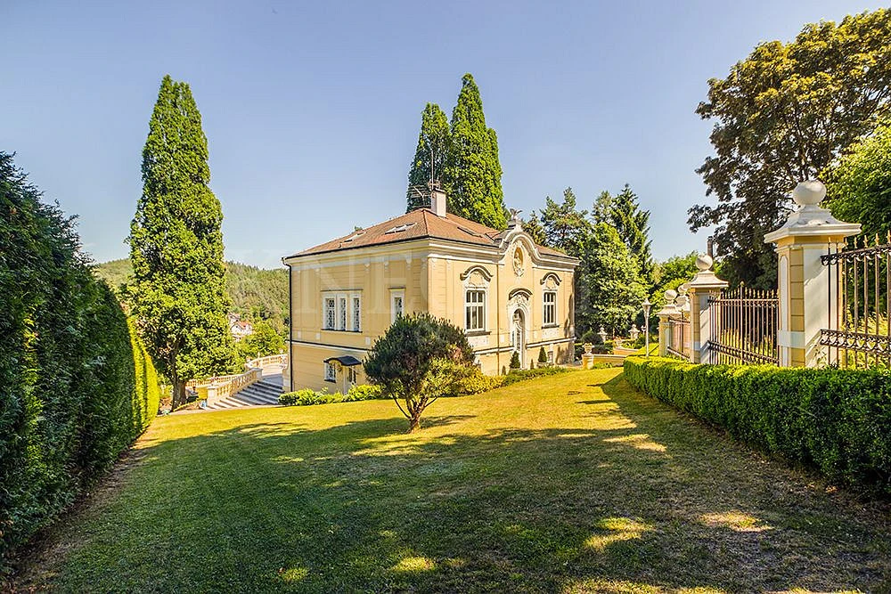 Nabízíme k prodeji výjimečnou nemovitost, secesní vilu postavenou v letech 1902 - 1904. Vila, kvůli výhledu a poloze, leží na svažitém pozemku s východní orientací a rozlohou 6235 m². Pozemek je prakticky rozdělen do několika funkčních částí. Ty vznikly velmi nákladnými terénními úpravami, které v devadesátých letech provedla společnost Metrostav pomocí nejmodernější techniky a technologií.