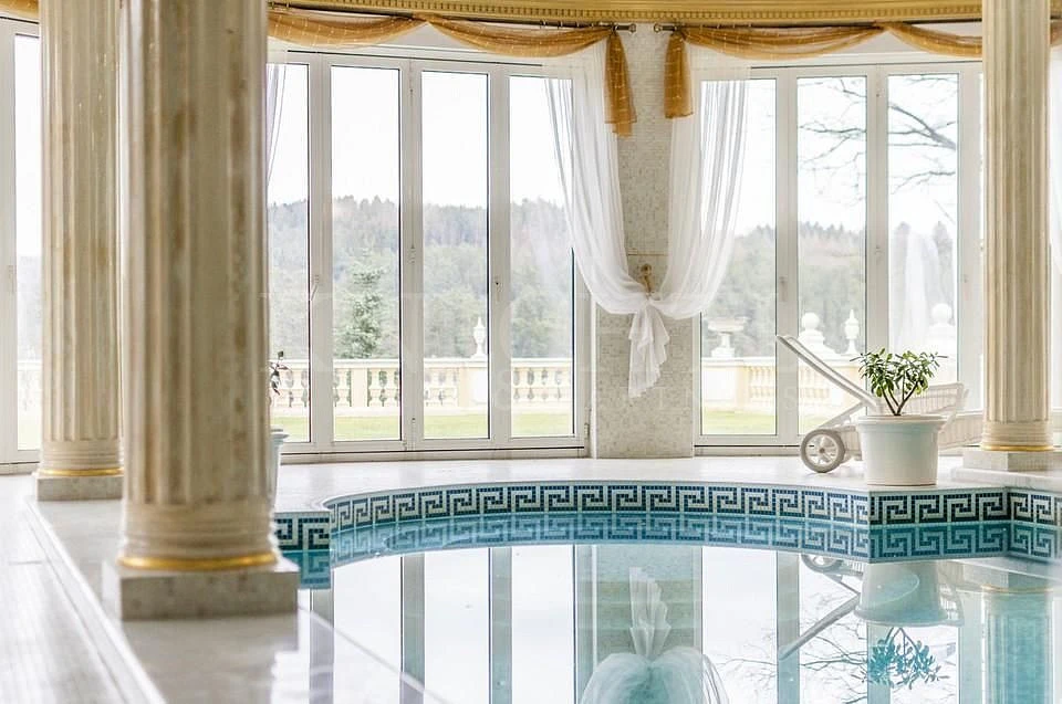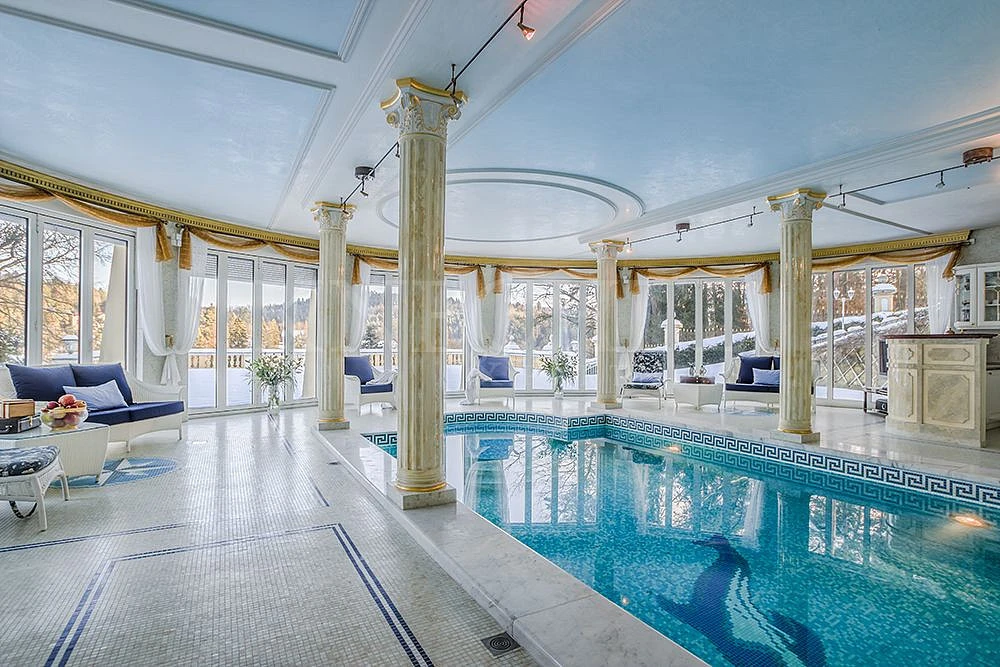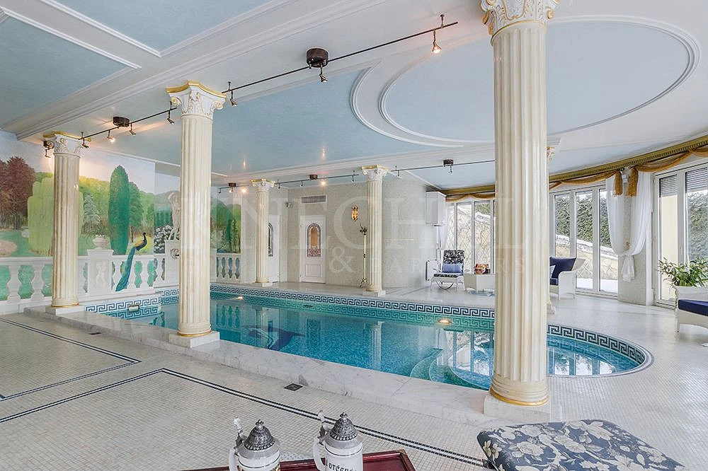 Vila je tvořena čtyřmi podlažími o celkové podlahové ploše 609,60 m². V prvním podlaží se nachází vnitřní bazén s barem, sezením, prostornou saunou i koupelnou. Tento prostor o velikosti 181 m² je několika hliníkovými francouzskými okny přímo propojitelný s travnatou terasou venku, která je ideálním místem pro relax i odpočinek v letních měsících. Další dvě podlaží jsou obytná, prostorná a velkolepá. Čítají několik ložnic, koupelen, kuchyni, obývací pokoj, pracovnu, jídelnu a další. V podkroví se nachází samostatná bytová jednotka, která je pojata v moderním stylu.