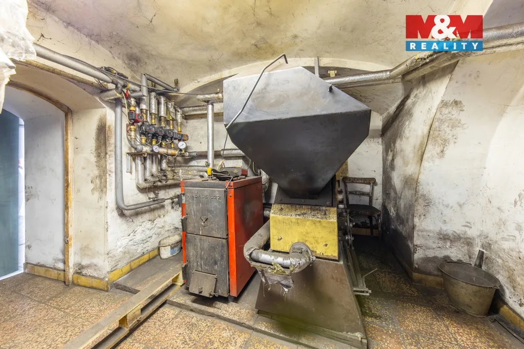 Dům disponuje velkým sklepem, kotelnou na tuhá paliva a prostornou půdou s možností dalšího využití (např. vybudování dalších bytových jednotek).