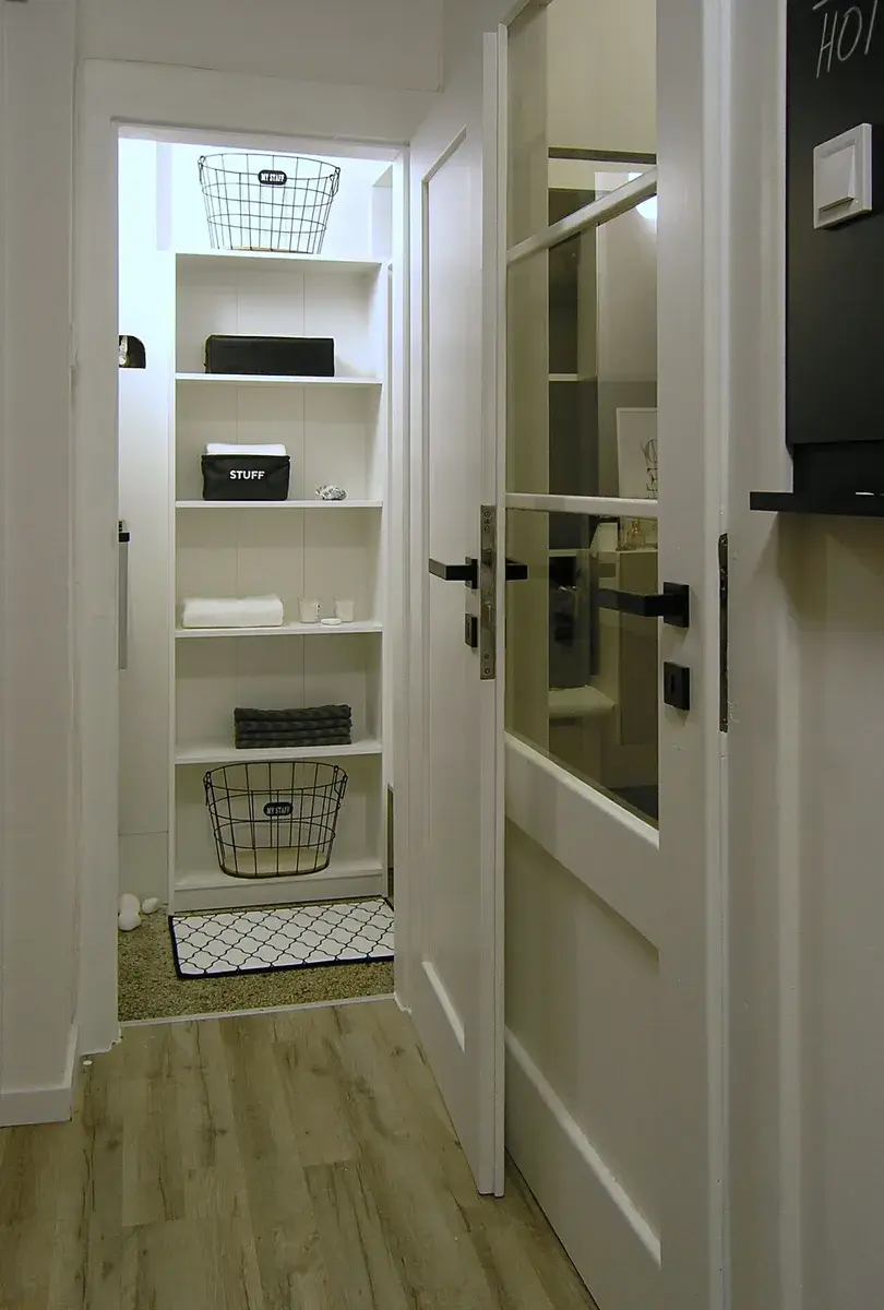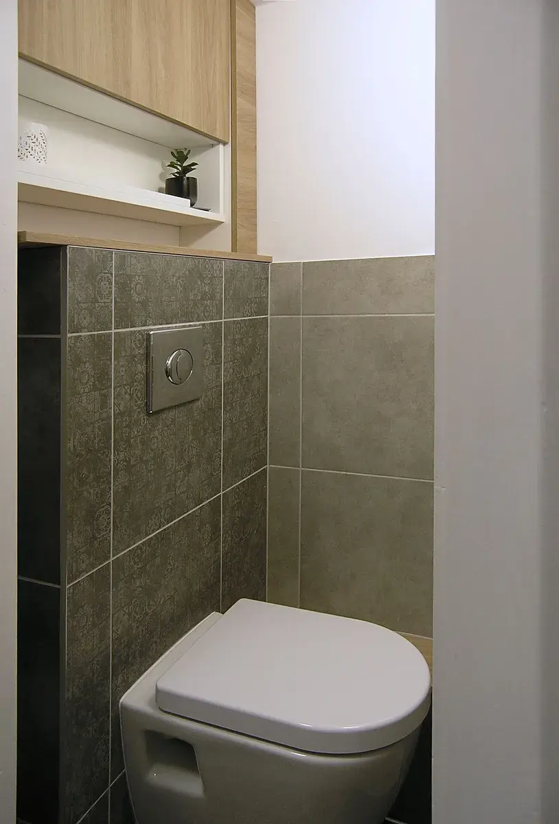 Byt se nachází v prvním patře, je vzdušný a slunečný, má velkou světlou předsíň s úložnými prostory a zrcadlem. WC i koupelna jsou umístěny odděleně. Koupelna disponuje vanou a moderním umyvadlem se skříňkou a nerezovou stojánkovou baterií (barvy osvětlení v koupelně lze měnit).