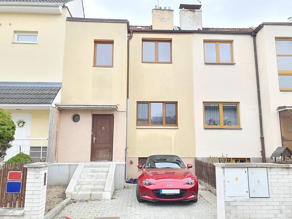 Pozemek 146 m2 - předzahrádka 25 m2 s parkovacím stáním, zastavěná plocha cca 50 m2, terasa 15 m2 a zahrádka 55 m2.