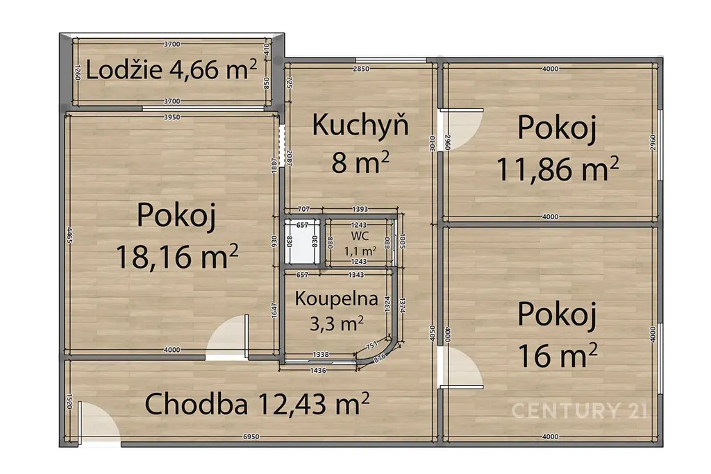 Byt o celkové ploše 74 m² (včetně lodžie 5,1 m²) nabízí praktické a velmi dobře řešené uspořádání – dva samostatné, neprůchozí pokoje poskytují dostatek soukromí například pro děti či pracovnu. Dominantou bytu je prostorný obývací pokoj se vstupem na lodžii, kde si můžete vychutnat ranní kávu nebo večerní relax.