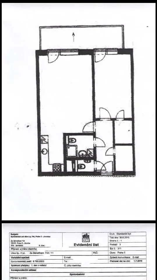 Byt o ploše 61,22 m2 + terasa se nachází ve třetím patře domu s výtahem.
