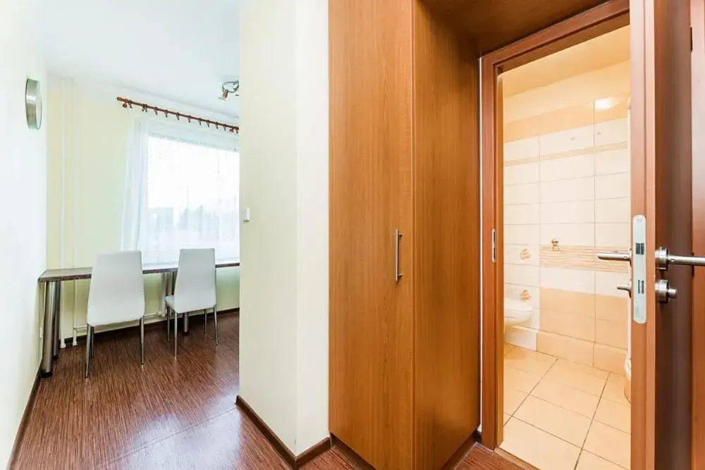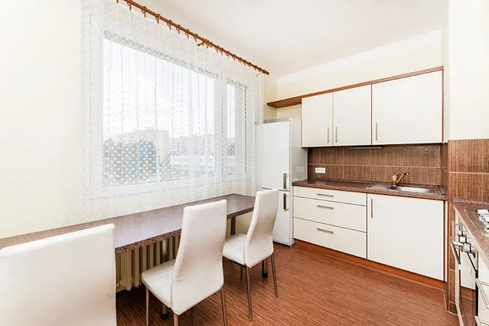Byt je částečně zařízený (lednice + vestavné kuchyňské spotřebiče, kuchyňský stůl a židle, prostorná šatní skříň v předsíni).