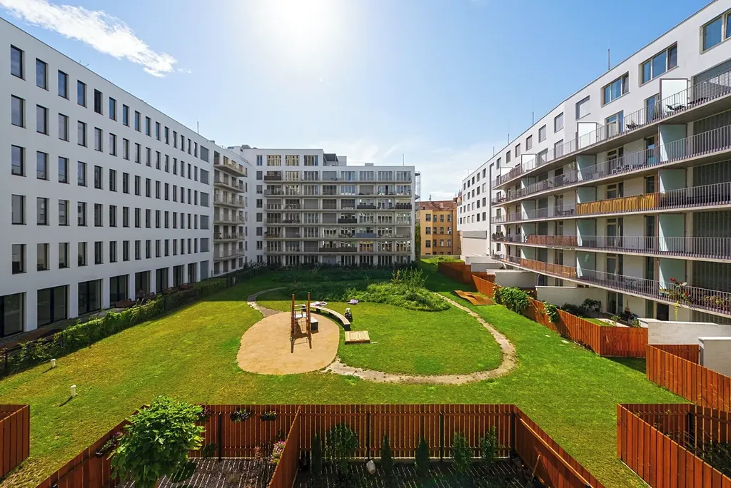 Moderní bydlení v centru, s terasou do klidného vnitrobloku a možností využití vnitřního parku/atria.