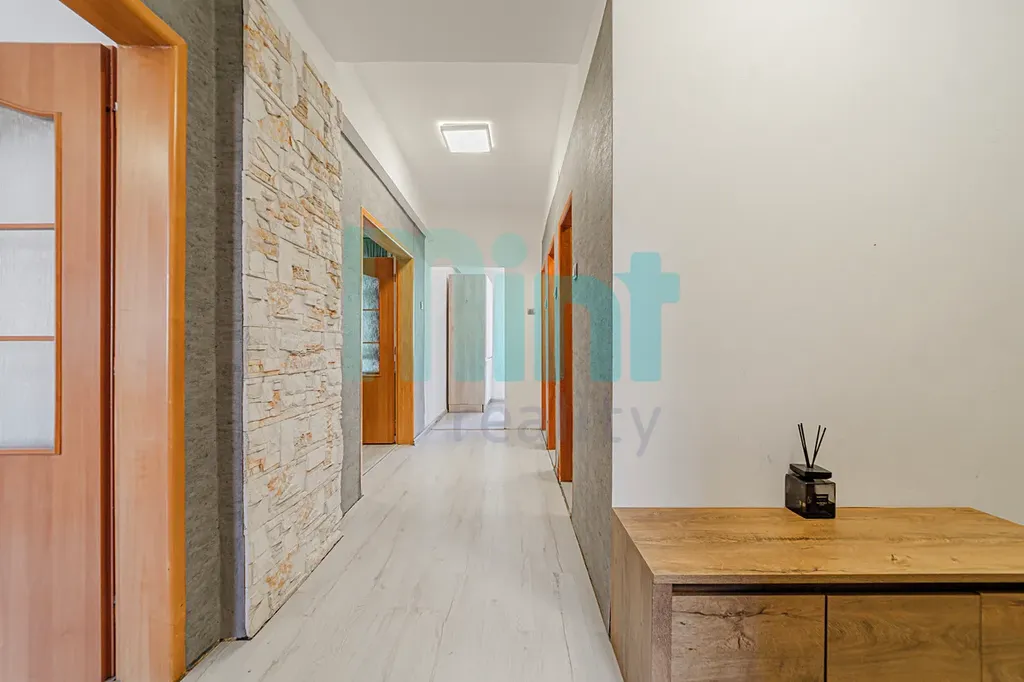 Interiér bytu byl průběžně modernizován, a tak zde najdete částečně nové rozvody elektřiny a zděné jádro. V bytě jsou laminátové podlahy, které dodávají prostoru moderní a vzdušný vzhled. Koupelna disponuje vanou, zatímco toaleta je samostatně, což zvyšuje komfort užívání.
