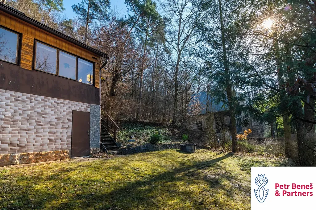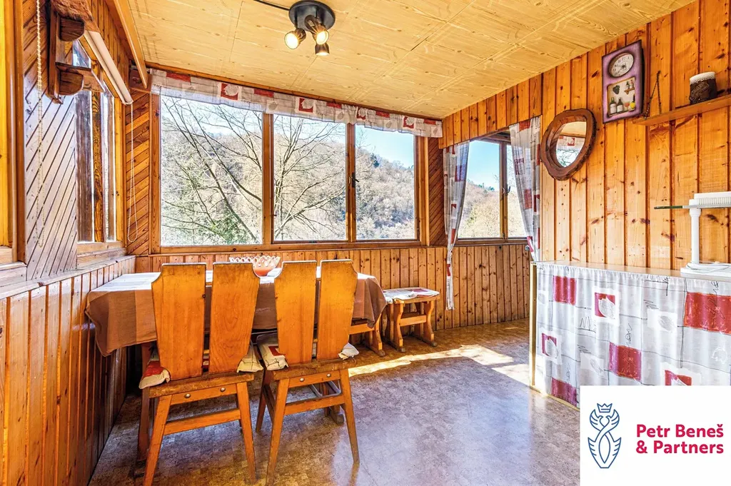 Skutečnou dominantou této nemovitosti je prostorná terasa s krbem, která přímo vybízí k pohodovému posezení s rodinou či přáteli. Ranní káva s výhledem do zeleně, večerní grilování nebo klid po dni stráveném u vody – právě tak si můžete představit svůj víkend na tomto místě. Z terasy vstoupíte do prosklené verandy s kuchyňským zázemím, odkud se otevírá krásný výhled na řeku Berounku. Ten ocení nejen milovníci přírody, ale zejména rybáři, pro které může být tato chata doslova malým rájem.