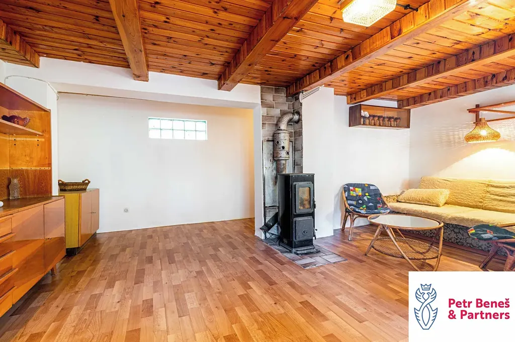 Ve spodní části najdete praktickou místnost se samostatným vstupem, ideální pro uskladnění sportovního, rybářského nebo zahradního vybavení. Součástí je také sprchový kout, který zvyšuje komfort užívání celé nemovitosti.